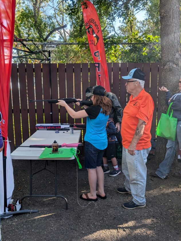 - BZ Corrigan, 10, practices shooting targets Thursday at the Youth Outdoor Festival in Minot with assistance from Larry Verraneault of Pheasants for the Future at the Game and Fish Conservation and Outdoors Skills Park at the ND State Fairgrounds.