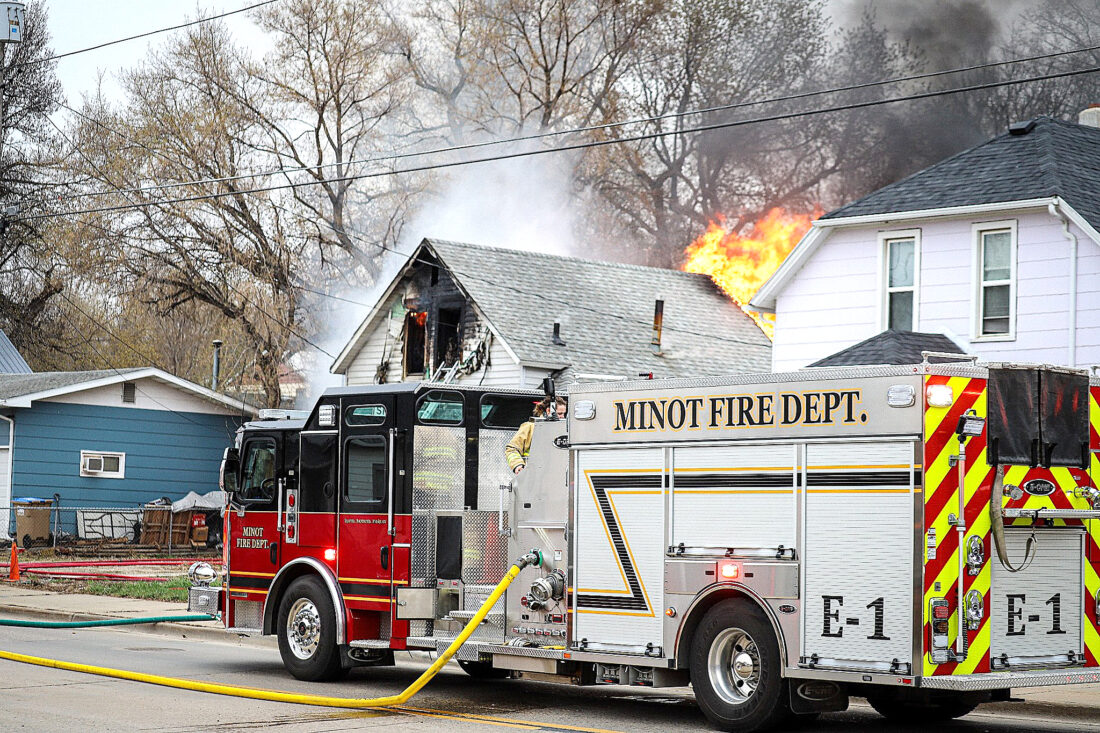According to a news release from the Minot Fire Department, crews responded to a report of a house fire at 1028 Valley Street at 9:35 a.m. Prior to arrival, Minot Central Dispatch advised responding crews that the sole occupant had safely exited the residence and was uninjured.
