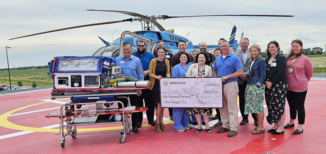 Thanks to a contribution of $100,000 from Bravera Bank and donations from the Trinity Health Foundation, a $210,000 neonatal transport isolette has been added to the service’s life-saving toolkit.