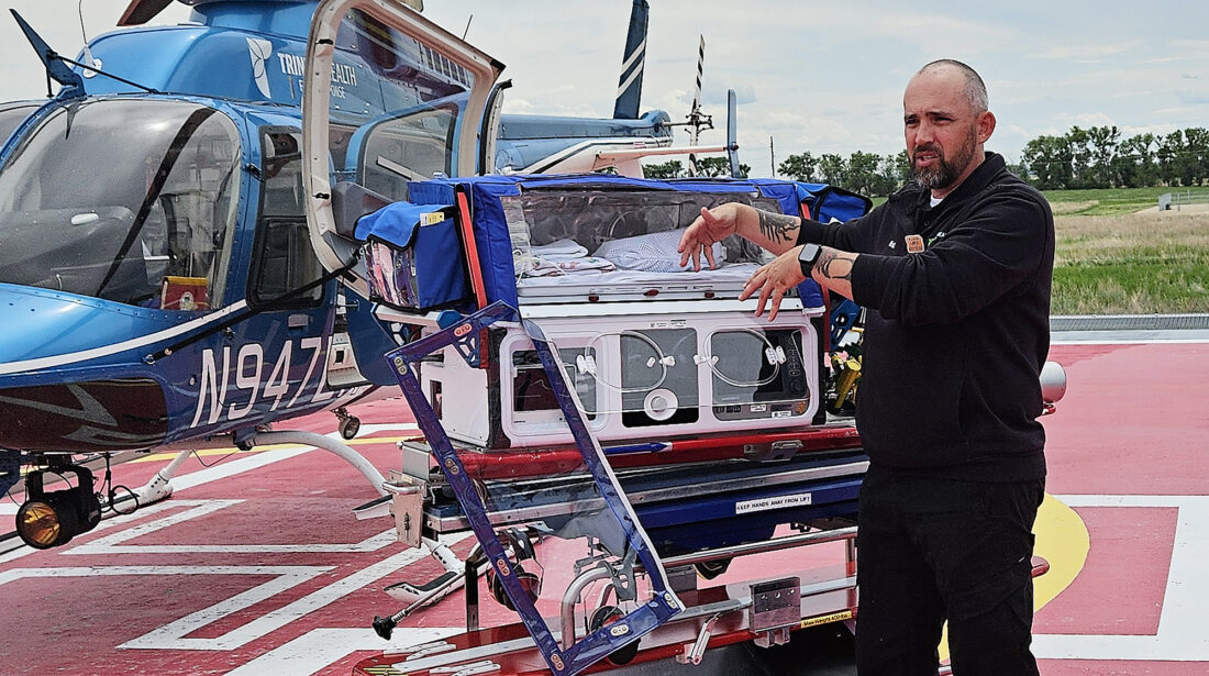 - Evan Brandt/MDN Rob Klink, Trinity’s unit manager of First Response Air Ambulance, tells about the ways the machine will increase infant healthcare in the region.