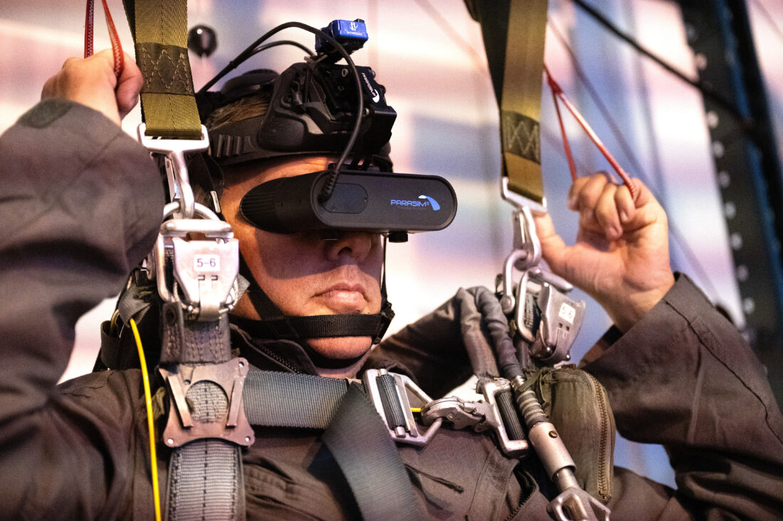 - North Dakota Gov. Kelly Armstrong practices parachuting procedures in a virtual reality simulator at Minot Air Force Base, North Dakota, June 30, 2025. In preparation for his orientation flight, Armstrong was instructed in emergency procedures, such as how to eject his seat and parachute safely. (U.S. Air Force photo by Senior Airman Kendra A. Ransum)
