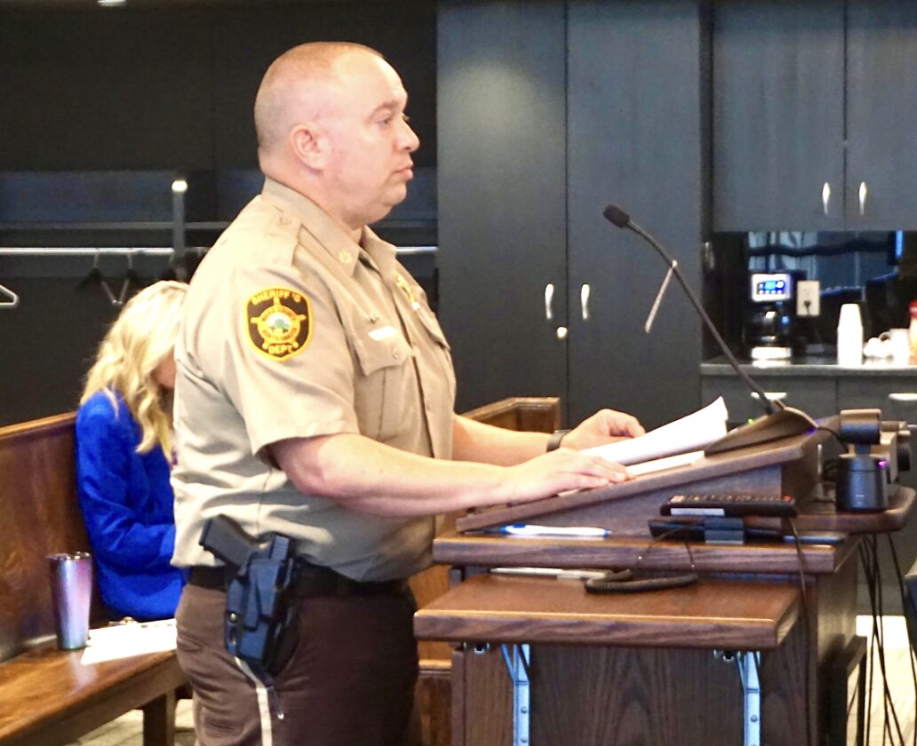 Jill Schramm/MDN Chief Deputy Larry Hubbard with the Ward County Sheriff’s Department takes feedback from county commissioners Tuesday, Aug. 19, in outlining the department’s plans for enforcing a new camping ordinance.