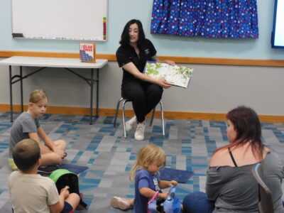 - Wendy Harper/MDN Kyla Jochmans from the Ward Soil Conservation District reads to the children attending the Nature Explorers Program at Minot Public Library Thursday, Aug. 7.