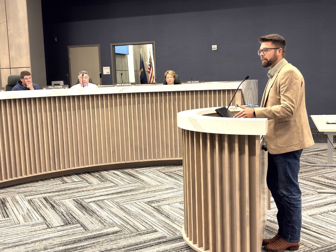Ryan Ackerman, board chair for Minot Area Chamber EDC, spoke about the need for continued economic development funding. He said he agrees that Minot should strive to be a community with a low tax, low regulation environment that relies on the market, but he noted all else must be equal.