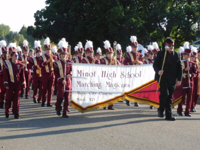 - Wendy Harper/MDN The Minot High School Magicians Marching Band plays in the MHS homecoming parade in Minot on Friday, Sept. 26.