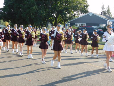 - Wendy Harper/MDN Minot High School cheerleaders march in the homecoming parade in Minot on Friday, Sept. 26.