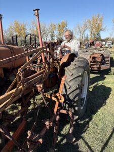 - Jill Schramm/MDN Robby Novak looks over an Allis-Chalmers WC that is set up for corn cultivating on Friday, Oct. 10. It is among tractors to be auctioned Saturday, Oct. 11, at the Novak property west of Minot.