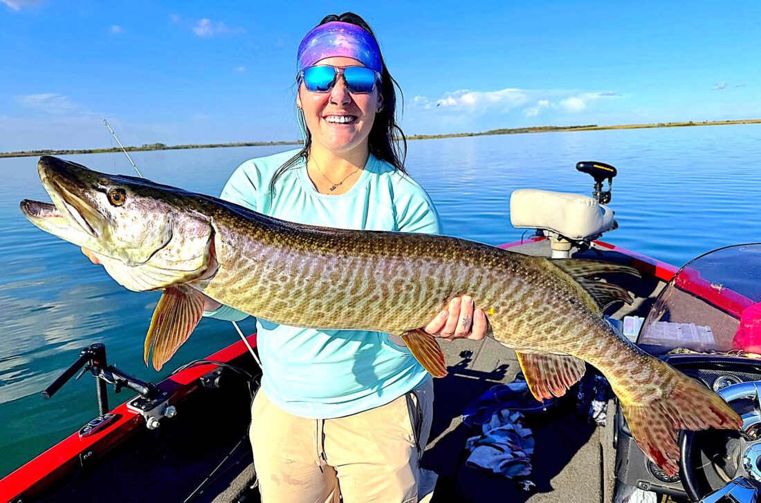 - Submitted Photo Kelli Fundingsland reeled in a whopper of her own at Lake Audubon on Sept. 20 while fishing with her father Kim Fundingsland. The fish measured 43 1/4 inches.