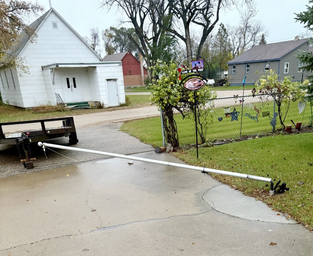 - A flagpole lies on the ground at a Granville home following a reported vandalism on Thursday, Oct. 16.