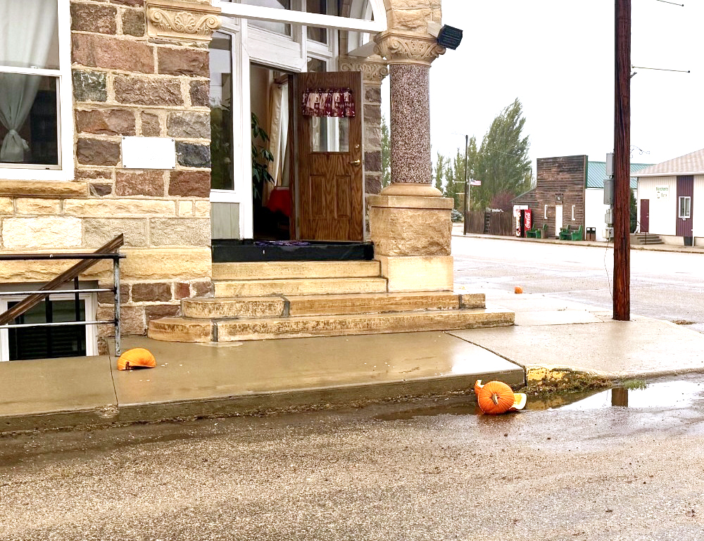 - Smashed pumpkins are scattered in front of a historic Granville building, the home of Andrew Allis.