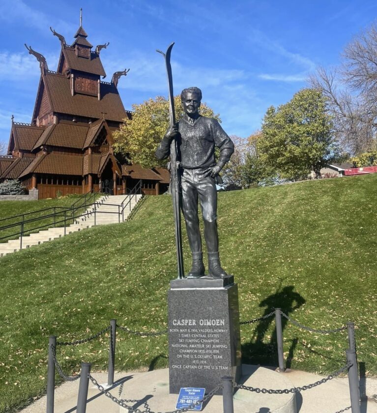 Submitted Photo A statue of Casper Oimoen, an Olympian skier, stands in the Scandinavian Heritage Park. Photo courtesy of the Scandinavian Heritage Association.