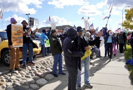 - Jill Schramm/MDN No Kings Day participants in Minot hold up signs and take part in organized chants on Saturday, Oct. 18.