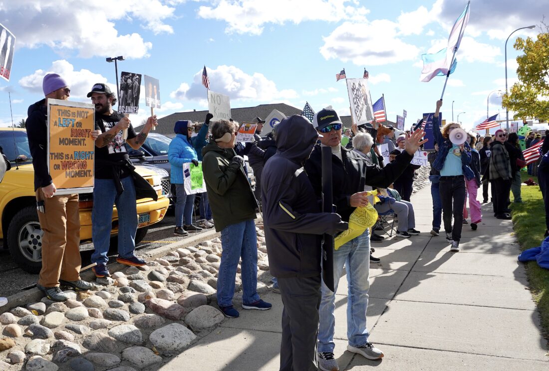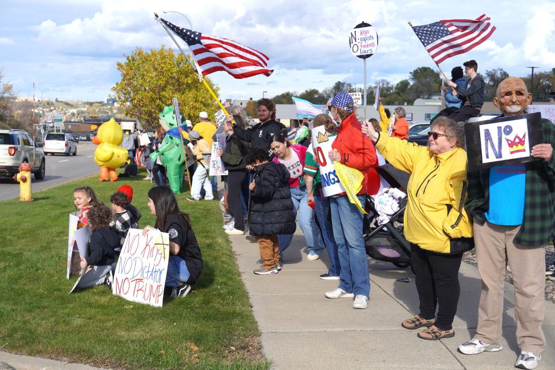Minot participants gather along South Broadway Saturday, Oct. 18, joining an estimated 7 million Americans in more than 2,700 cities during the No Kings Day of Peaceful Action. Local rally participation was estimated at about 300 people. The national estimate was 2 million more than a similar June event, according to national event sponsors, who called it a nonviolent defiance of authoritarianism occurring under President Donald Trump’s administration. All No Kings events were organized in coordination with local grassroots partners.