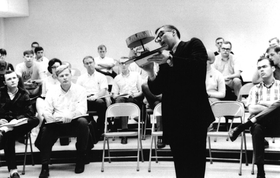 Submitted Photo The late John Odegard is shown teaching a class at the school of aviation he founded at the University of North Dakota. Odegard, originally from Minot, was an aerospace educator for 32 years. Photo from the University of North Dakota.
