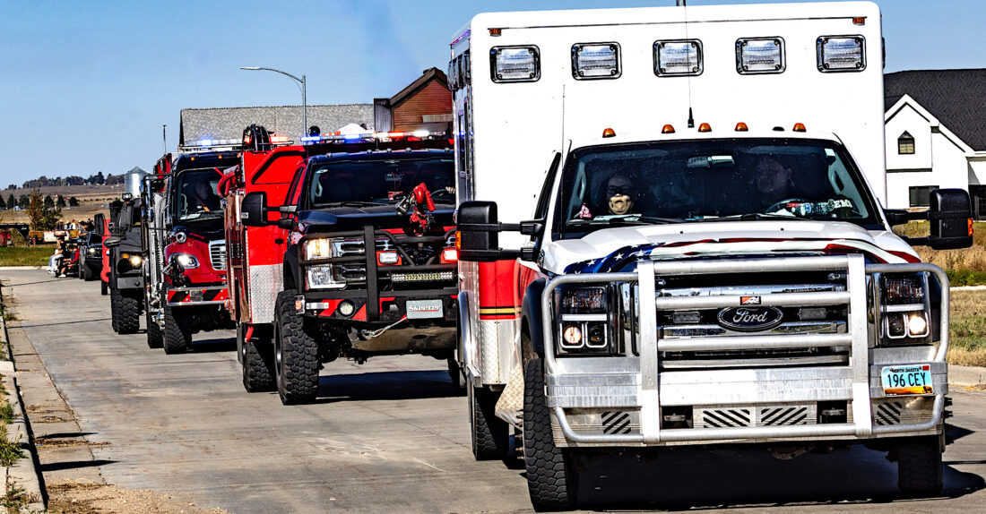 - Submitted Photo First responders in White Shield including the McLean County Sheriff’s Department lead the White Shield Homecoming Parade Thursday, Oct. 9. Photo by Karen LoneFight.