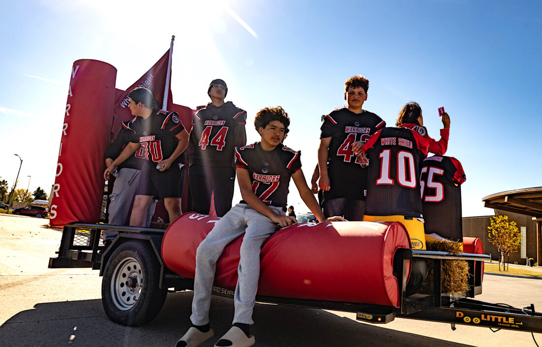 - Submitted Photo Quincy Jackson, Stetson Alberts, Dylan Young Bird-Basurto and Dustin Ward take part in the White Shield Homecoming Parade Thursday, Oct. 9. Photo by Karen LoneFight.