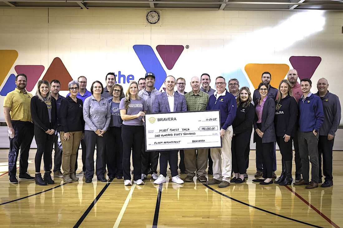 Bravera has pledged $140,000 to the Minot Family YMCA and Prairie Grit Adaptive Sports to help replace the north gym hardwood floor.