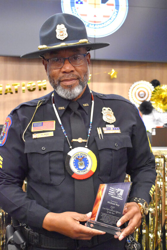 - Michael Roy received the Law Enforcement Officer of the Year Award for a school resource officer at the Fort Berthold Indian Reservation Emergency Services Appreciation Day in New Town. Photo by Micah Moore.