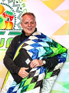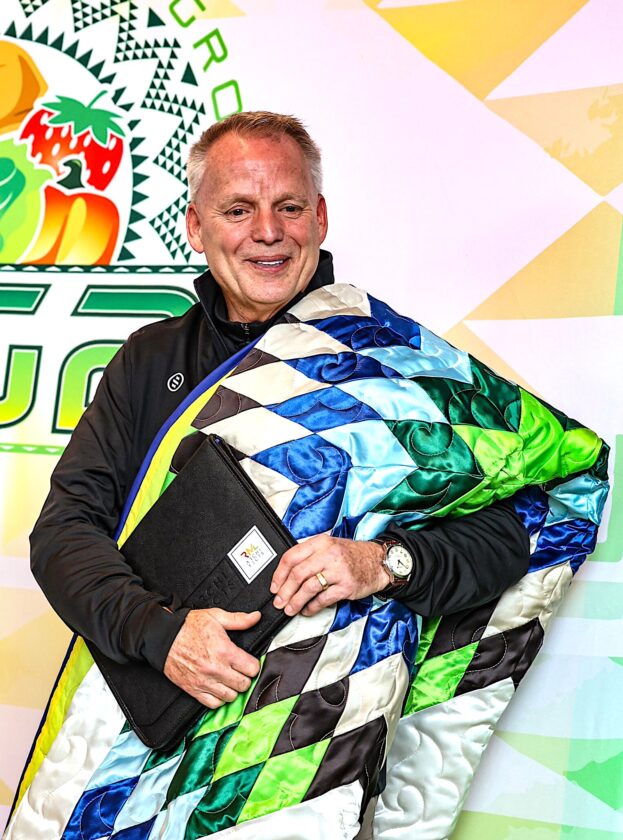 - Submitted Photo Randy Lindemann of RML Architects received a star quilt during the grand opening of the MHA Nation’s Native Green Grow greenhouse. Lindemann is originally from Minot.