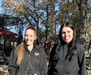 Eloise Ogden/MDN ABOVE: Quinn Iffert, left, and Ellie Johnson, zookeepers at Roosevelt Park in Minot, took part in a program to spotlight black-footed ferrets to count the numbers of these animals and monitor those living in Badlands National Park in South Dakota.