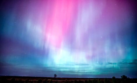 The Northern Lights are shown, facing south, in this photo by Karen LoneFight.