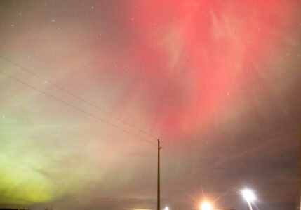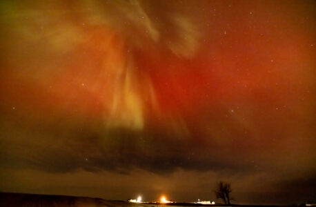 The Northern Lights appear in the sky, looking southeast, in this photo by Karen LoneFight.
