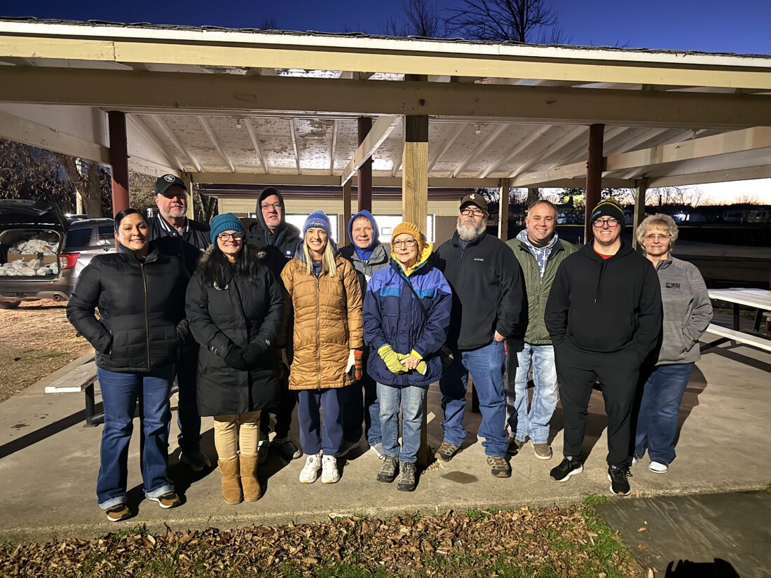 - Submitted Photo Members of the Velva American Legion and and Velva Veterans Group (VVG) and Joni Anderson, McHenry County Food Pantry coordinator, took part in helping with the giveaway Thursday, Nov. 20, at the Velva City Park to provide food to those in need for Thanksgiving. From left to right are: Megan Mondragon, Legion; Tom Wible, VVG and Legion; Melissa Schreiner, Legion Auxiliary; Mike Schreiner, VVG and Legion; Kendra Colby, Legion; Dennis Oster, VVG and Legion; Christine Oster, VVG and Legion; Al McIlvane, VVG and Legion; Jamie Frankl, VVG and Legion; Brian Smelden, Legion; and Anderson.