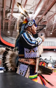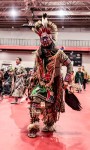 - Nape Fox, a champion chicken dancer, dances at the Veterans Day Powwow in White Shield Tuesday, Nov. 11. Photo by Karen LoneFight