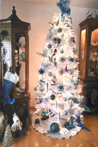 So, we have a small but close family always celebrating our anniversary Christmas Eve together. We have made changes over the years. For several years, we would drive around Minot and look at the beautiful Christmas lights, then have hors d’oeuvres and punch. We changed things again when our church started having candlelight service on Christmas Eve, so now we go there for service and communion. Then we drive through Oak Park to view the beautiful light displays and then home for lasagna and hors d’oeuvres. Then we open our gifts to each other. Sometimes we play cards, Hearts and games. It’s a great evening of time with our family.