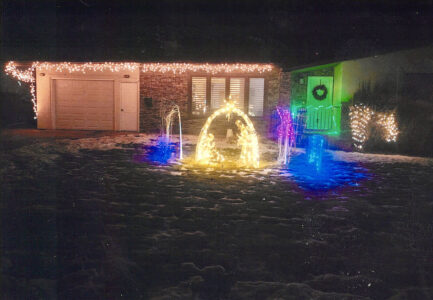 Sam has just turned 87 and I am 83. Our home burned four years ago and we moved into Minot on Seventh Street Southwest. We are still decorating the outside as well as the inside. We had to start over with new decorations as ours burned in the fire.