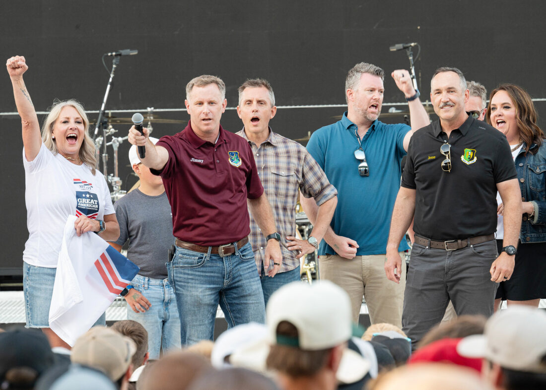 - U.S. Air Force Col. Jimmy Schlabach, 91st Missile Wing commander, (holding microphone) gives remarks during the Great American Defense Communities recognition ceremony at the North Dakota State Fair in Minot July 18. U.S. Air Force photo by Senior Airman Kyle Wilson.
