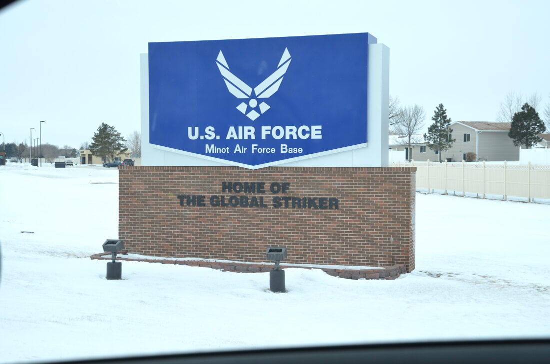 - MDN File Photo A new sign installed in 2019 near the front gate carries Minot Air Force Base’s official name with “Home Of The Global Striker.” The sign identifies the role the Minot base and its personnel have in the world.