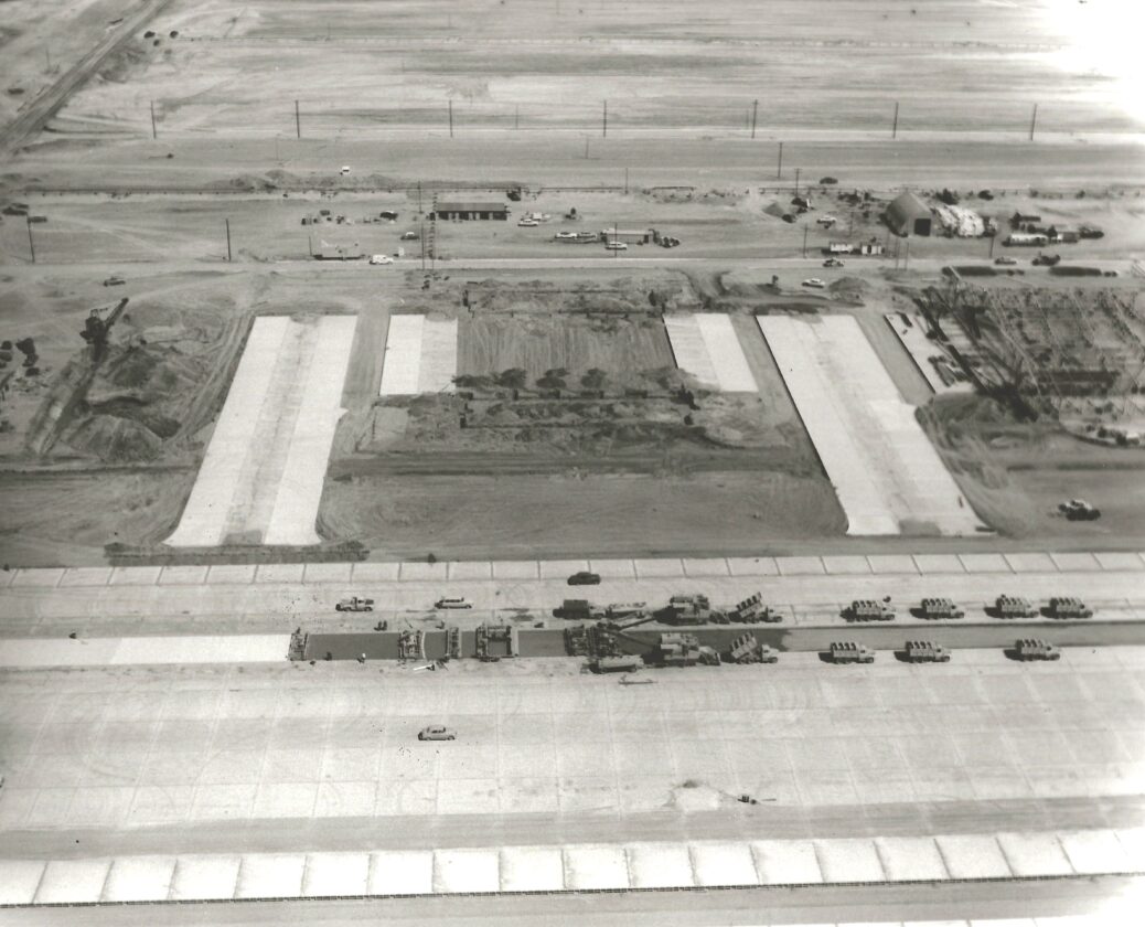 MDN File Photo Construction was underway at Minot Air Force Base, shown in this August 1956, photo. In 1960, a mayor’s committee was set up in Minot to select and submit official names for the base north of Minot.