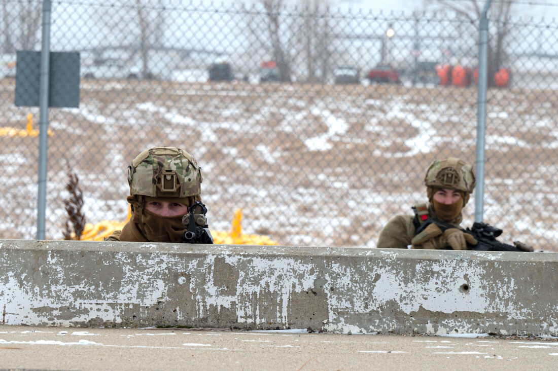 - Submitted Photo U.S. Air Force security forces airmen with the 91st Security Forces Group participate in a simulated launch facility recapture and recovery as part of the Cold Weather Defender Course at Minot Air Force Base Jan. 20. The exercise emphasized movement, decision-making and the application of lifesaving medical skills under realistic conditions. U.S. Air Force photo by Airman 1st Class Vincent Padilla.