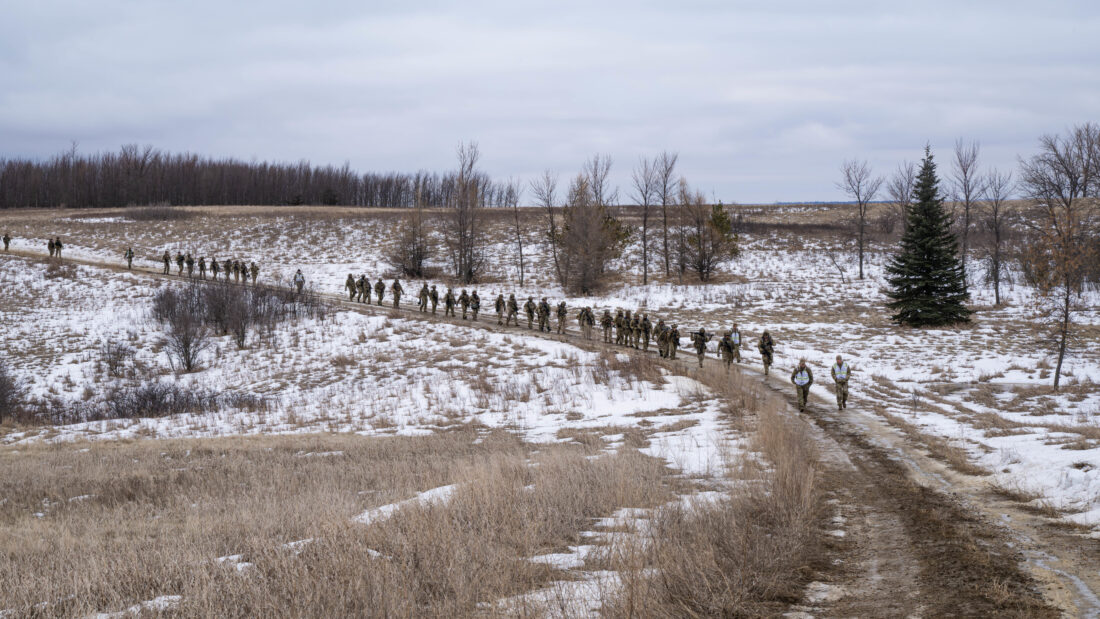 U.S. Air Force airmen assigned to the 91st Missile Security Operations Squadron ruck through a field training site at Garrison Feb. 6. U.S. Air Force photo by Senior Airman Kyle Wilson.