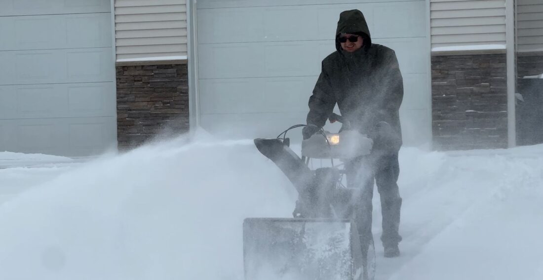 CHARLES CRANE/MDN Jeff Smith of Minot busies himself clearing his driveway Wednesday afternoon. See video online.