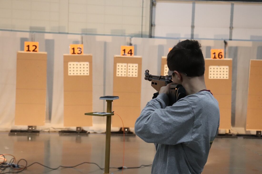 - Submitted Photo Nolan Lee aims his air rifle during the standing portion while competing in the Sporter – Three Position Division.
