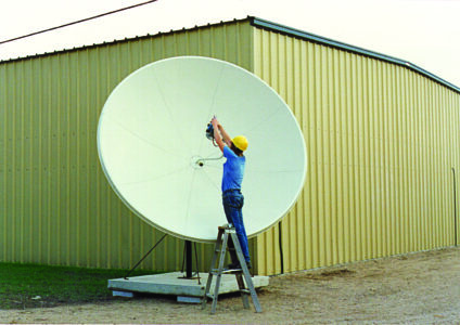Submitted Photo An SRT employee works on a C-Band Satellite dish. The 1980s ushered in satellite TV service for SRT.