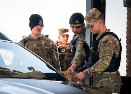 The exercise paired the 5th Security Forces Squadron (5 SFS) with the Army’s 816th Military Police Company (816 MPC) to build practical skills in installation law enforcement, a mission set that differs from this Army unit’s typical combat support roles. Training scenarios included installation breach response, high-risk traffic stops, traffic investigations, theft and assault response, as well as routine patrol and gate operations.