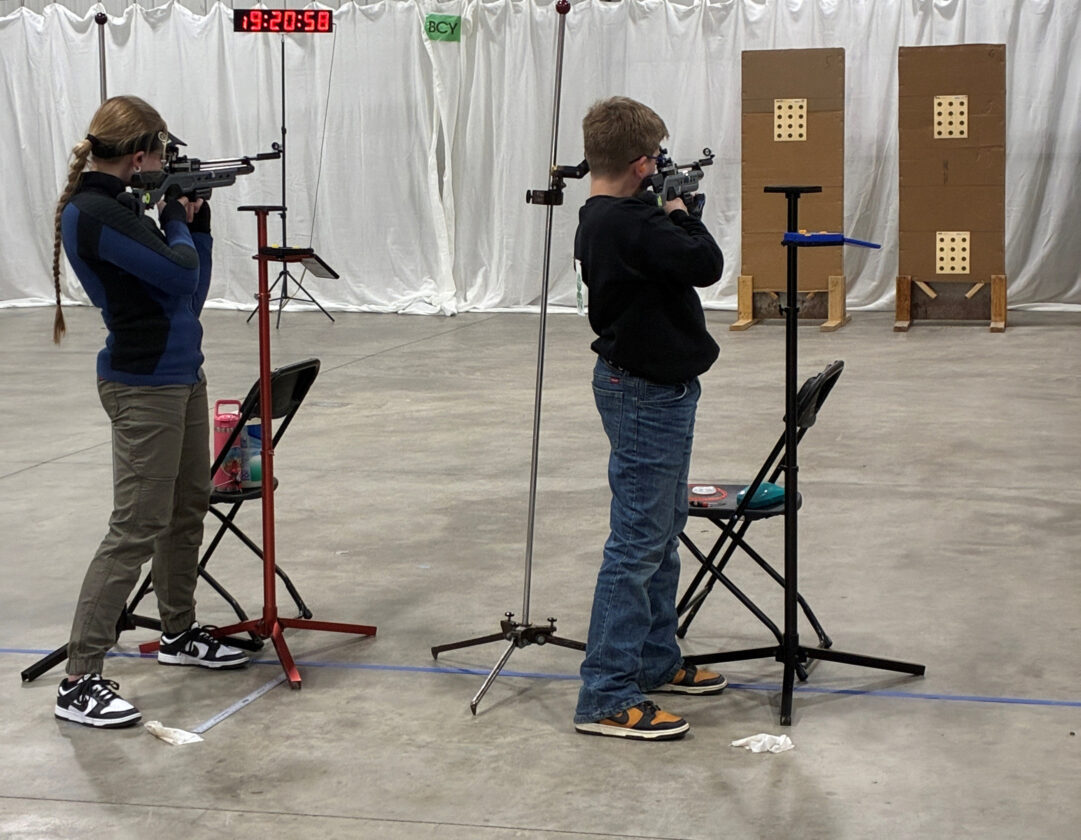 The match featured age-based divisions including Beginners (ages 8-10), Juniors (11-13), and Seniors (14-18), and Masters (age 14 and older who have qualified for national competition). Participants used .177 caliber sporter air rifles on AR 5/10 International 10-meter targets.