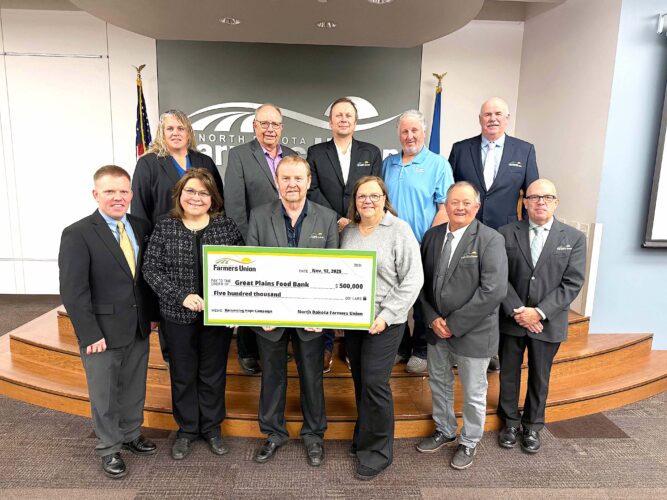 JAMESTOWN – North Dakota Farmers Union has donated $500,000 to the Great Plains Food Bank. The contribution is dedicated to the relief agency’s Harvesting Hope Campaign, which is focused on building a new statewide distribution center to expand food access across the state.