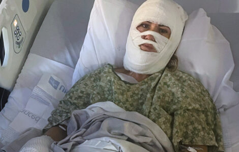 SAVANNAH, Ga. (AP) — A Georgia woman has been hospitalized with severe burns after someone poured a corrosive chemical onto her head while she was walking at a public park in Savannah, the victim's son and a close friend said Friday.