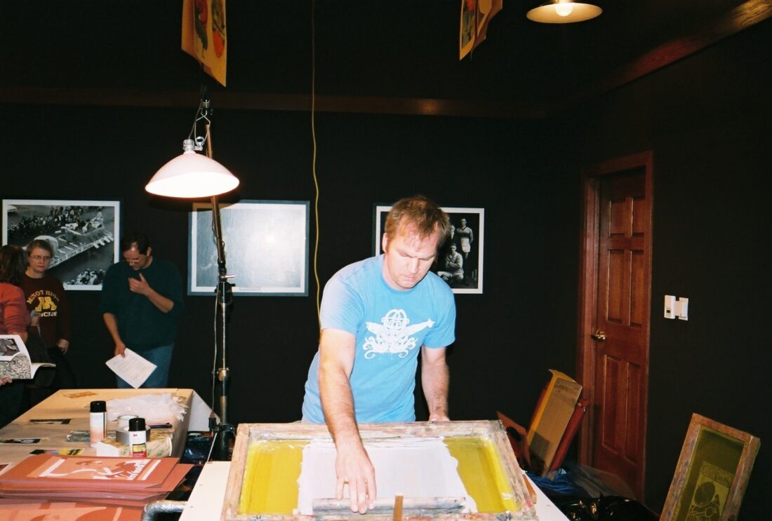 2007 marked the first NOTSTOCK, a one-day event- involving one printmaker, Jay Ryan, which had sparked an interest in many on campus. Seventeen years later, the one-day event has seamlessly evolved into a now three-day event. NOTSTOCK brings art enthusiasts together from all over the area including several high school art classes visiting from Minot and surrounding areas.