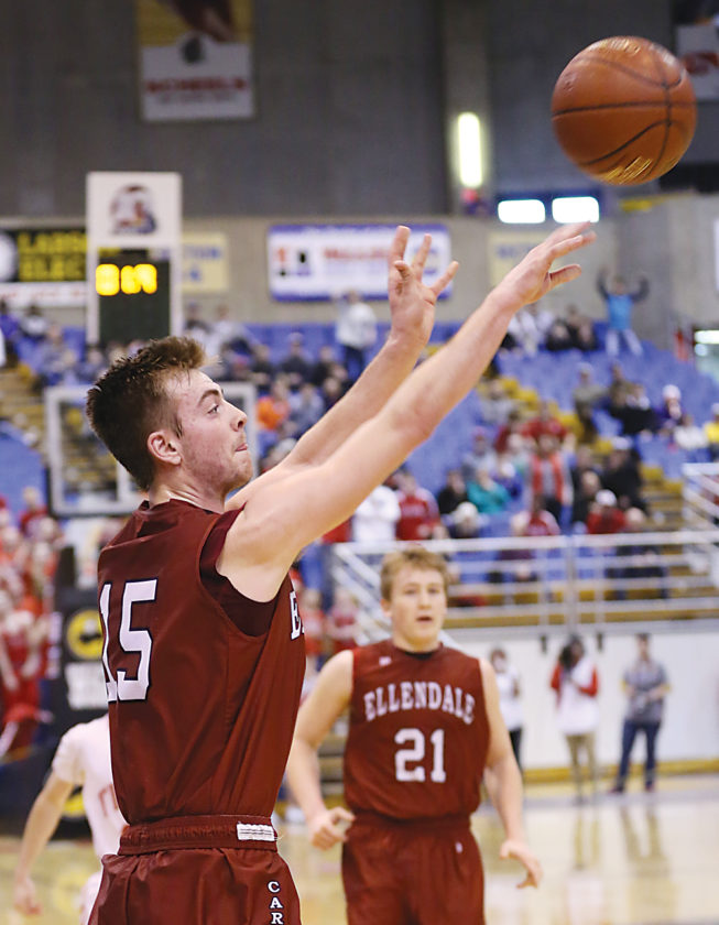After a timeout, Ellendale’s Luke Wertz caught an inbounds pass at midcourt. He then turned and found Vance in the right corner for the game-winner.
