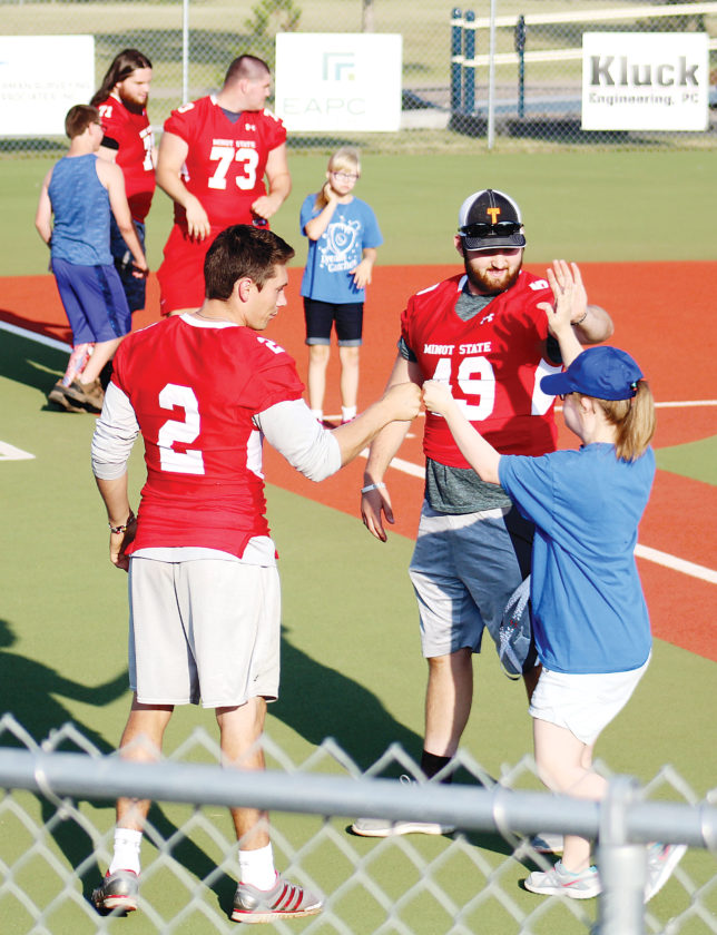 MSU football plays ball with Minot Dream Catchers
