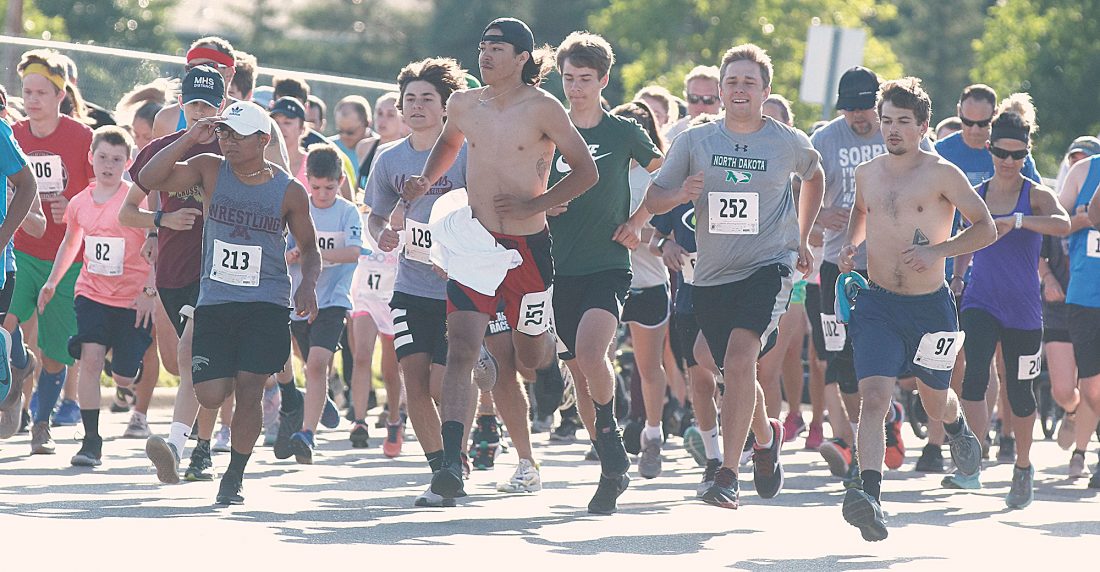 Groups of runners run down 16th Avenue SE. The route began at Our Redeemer’s Church and concluded at the NDSF Fairgrounds. This years race was not timed and was open to all ages.
