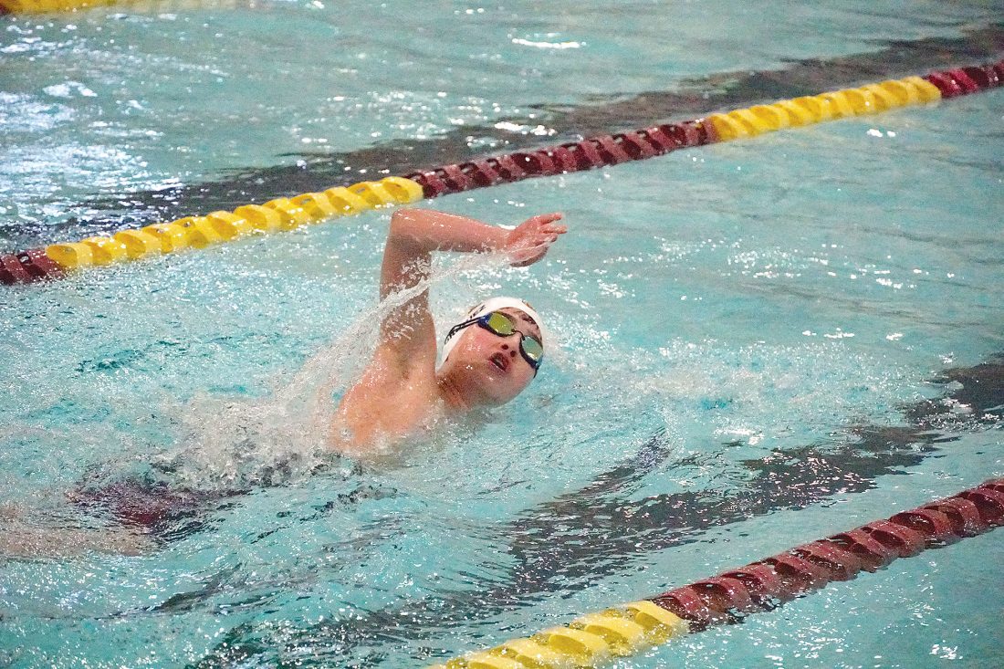 Ryan Ladika/MDN Magi freshman Ramiro Rodriguez competes in the 200-yard freestyle during Minot’s Friday evening meet.