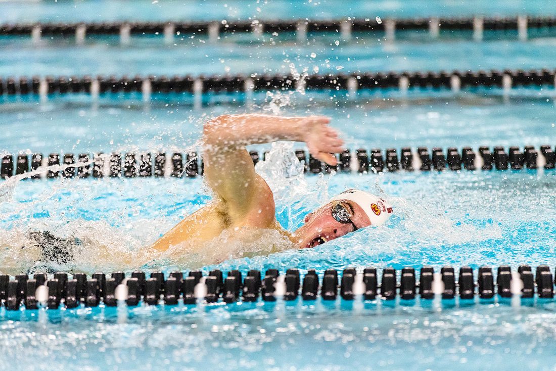 Submitted Photo Minot High’s Grant Schaeffer set one of four new records, swimming in the 200-yard freestyle. Schaeffer set a new Wester Dakota Association West Region record with a time of 1:46.58 in the 200-yard freestyle. Photo courtesy of Oscar Charles Photography.