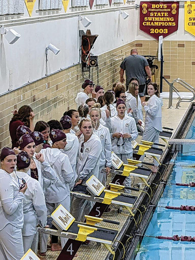 James Jackson/MDN The Majettes swim and dive team getting ready for their matchup against West Fargo Sheyenne on Friday.