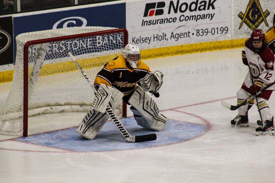 Both goalies were refusing to budge in the contest, as Ackerman fought off 18 shots and Lewis fought off 10 to keep the game in a scoreless tie heading into the third period. Mirroring the Eagles push to break the scoreless tie, Minot began picking up the pace offensively near the end of the second period but were unable to break through.
